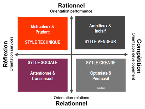 Il n’existe pas de type commercial idéal. Ce sont plutôt des combinaisons de styles qui déterminent le succès. L’expérience démontre que, par exemple, dans la vente de produits techniques, le commercial « méticuleux et prudent », paraît être le plus adéquat. Pourtant, si ce type de commercial ne dispose pas également d’un bon niveau dans le style « ambitieux et incisif », il aura de la peine a réussir à développer un marché en friche.